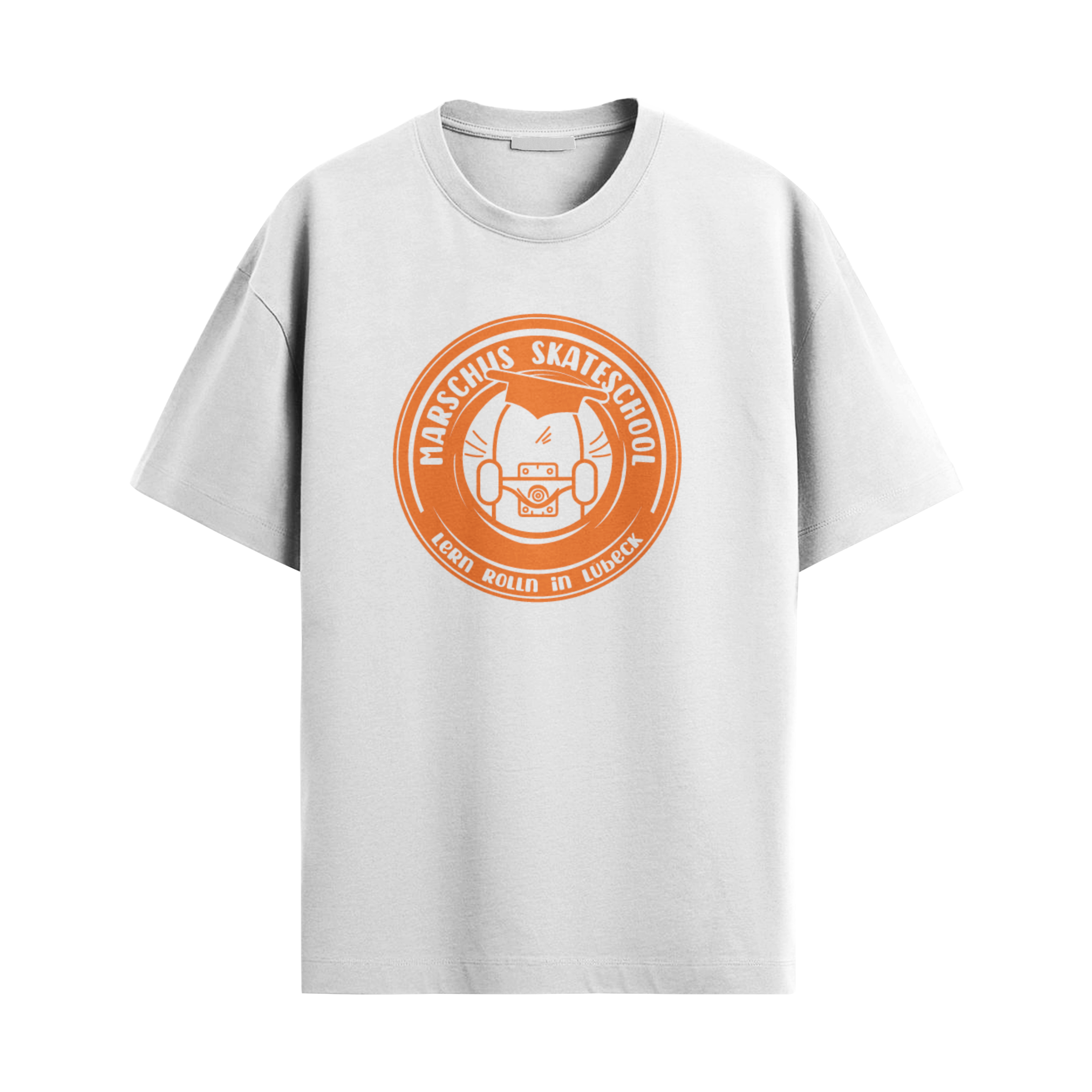 Unsere Shirts sind Ausdruck von Authentizität und Handwerkskunst. Jedes einzelne Shirt wurde mit Liebe zum Detail gestaltet und von Hand veredelt, um sicherzustellen, dass es die Philosophie der Marschiis Skateschool in sich trägt. Der markante, dunkel orangefarbene Siebdruck verleiht deinem Shirt Charakter und verknüpft es mit der vitalen Energie des Skateboardings.