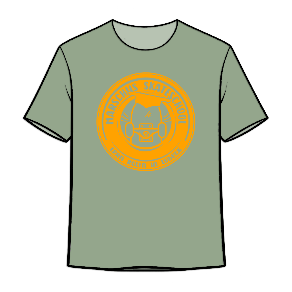 Unsere Shirts sind Ausdruck von Authentizität und Handwerkskunst. Jedes einzelne Shirt wurde mit Liebe zum Detail gestaltet und von Hand veredelt, um sicherzustellen, dass es die Philosophie der Marschiis Skateschool in sich trägt. Der markante, dunkel orangefarbene Siebdruck verleiht deinem Shirt Charakter und verknüpft es mit der vitalen Energie des Skateboardings.